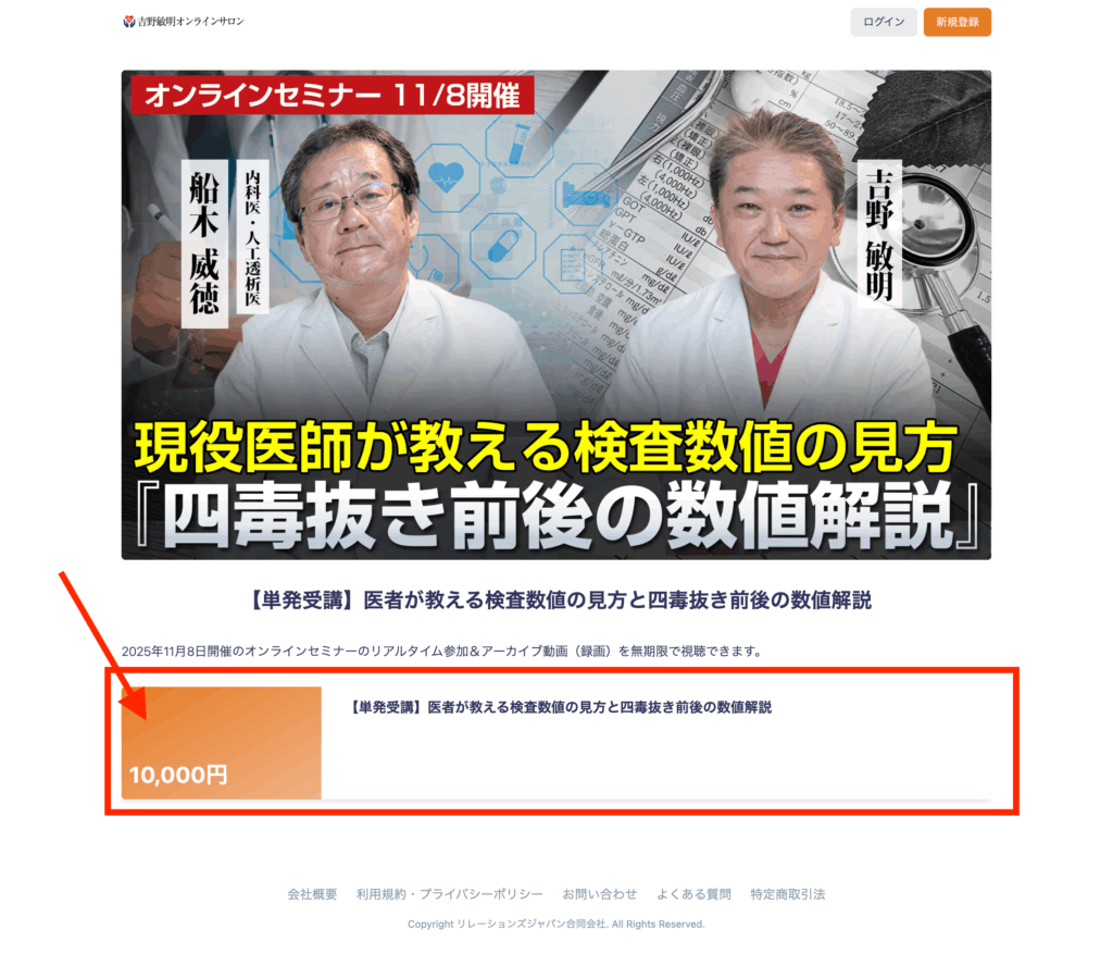 「吉野敏明会員ページ」に会員登録後、「吉野敏明オンラインサロンへの入会(月額5,500円)」