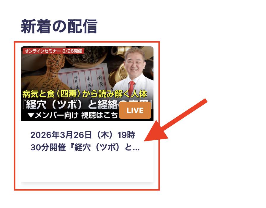 会員ページにログイン後、「新着の配信」をクリックするとセミナーに参加できます。セミナーの約10分前から入室できます。